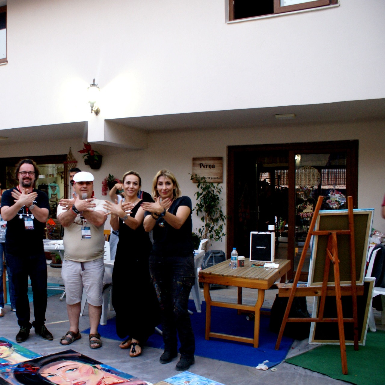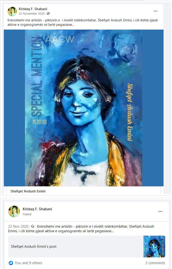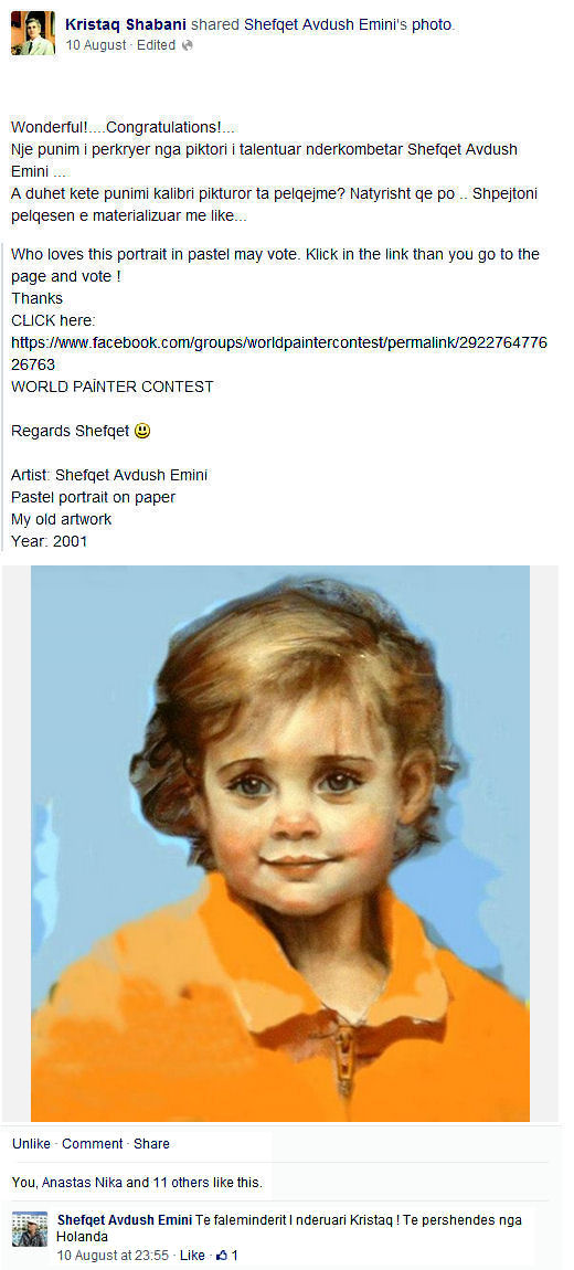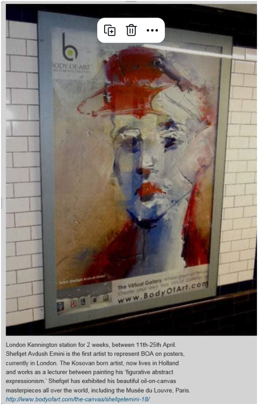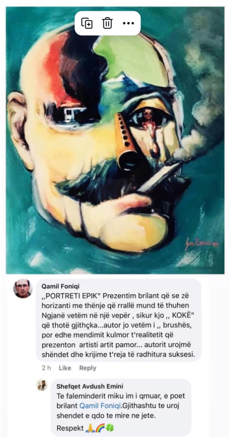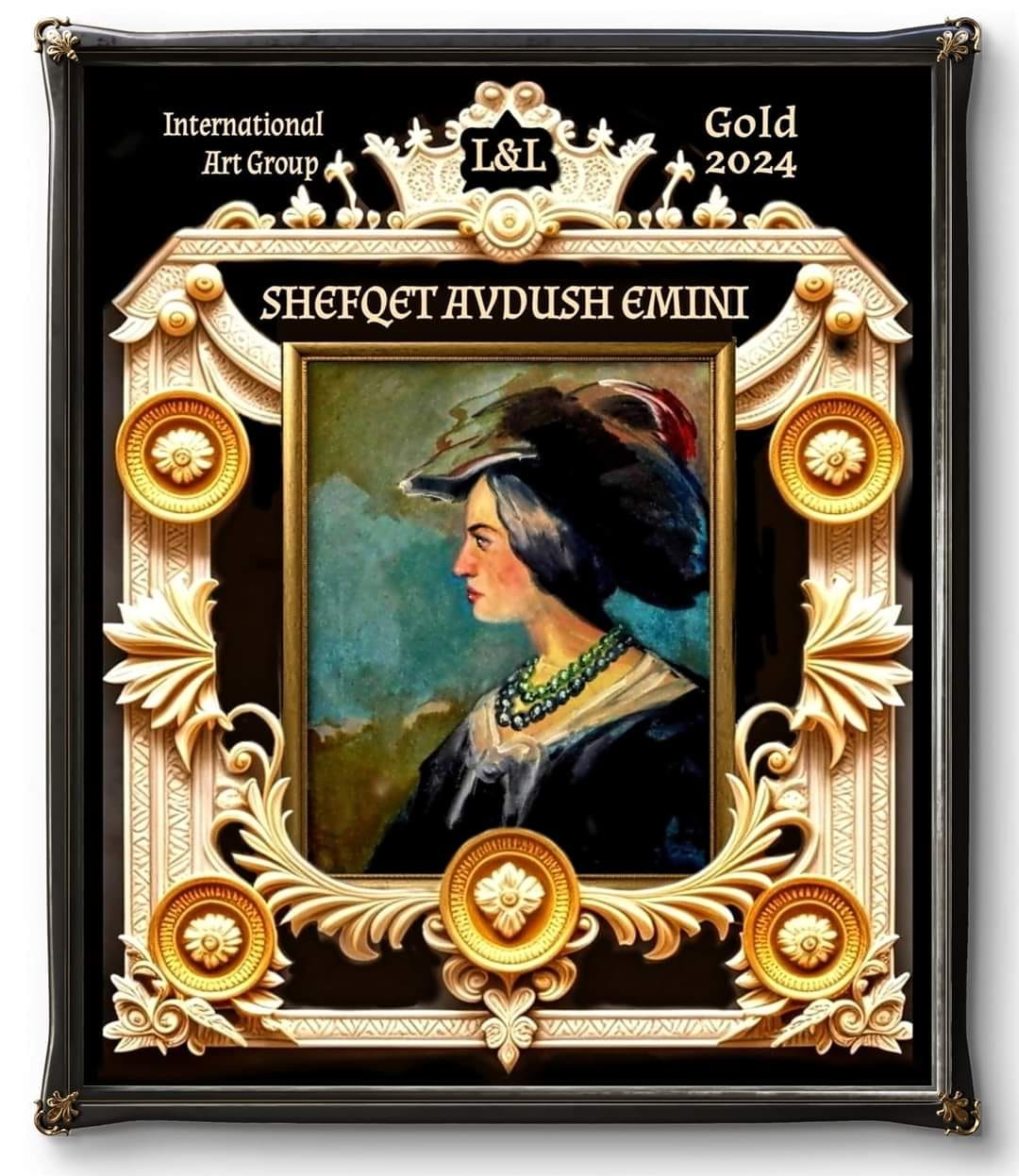 Kjo pikturë e realizuar nga artisti i njohur ndërkombëtarisht, Shefqet Avdush Emini, është një portret ekspresiv i krijuar me një qasje unike dhe një stil të dallueshëm, i cili karakterizohet nga ngjyra të guximshme, kontraste të forta dhe lëvizje të lirshme të penelit.