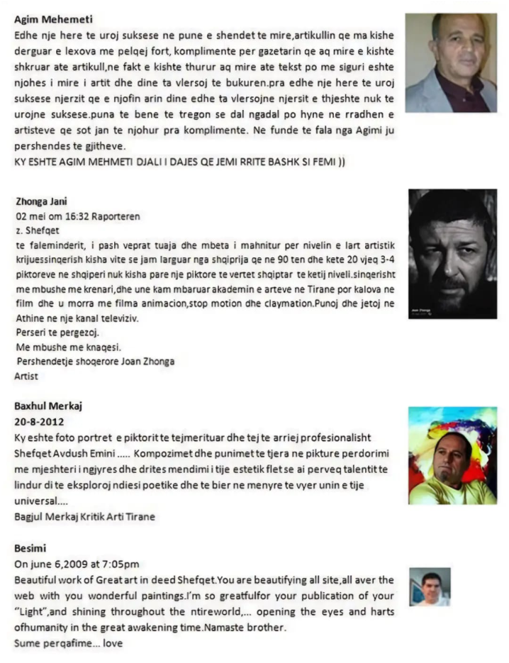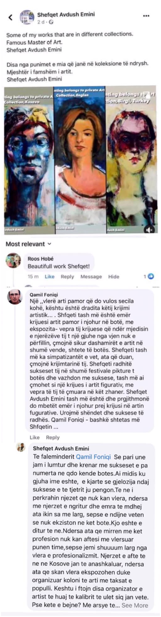 Shefqet Avdush Emini është një emër i mirënjohur në skenën ndërkombëtare të artit bashkëkohor, i njohur për qasjen e tij ekspresioniste të fuqishme, përdorimin e guximshëm të ngjyrave dhe dinamizmin emocional të veprave të tij. Me një karrierë të shquar dhe të pasur në krijimtari, ai ka arritur të lërë një gjurmë të pashlyeshme në botën e artit, duke shfaqur një vizion unik që shkon përtej kufijve të formës dhe realitetit tradicional.